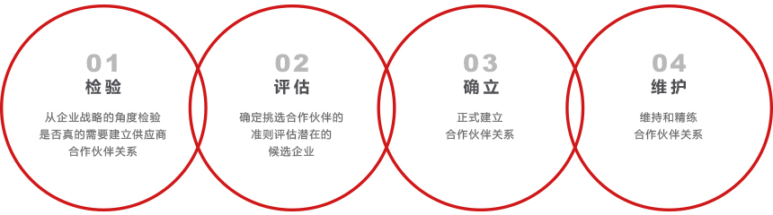 供應鏈管理的精髓在于企業間的合作,因此,建立戰略合作伙伴關系是供應鏈戰略管理的重點。快騰戰略伙伴關系是一定時期內供應鏈中各節點企業(例如供應商與制造商,制造商與經銷商之間),為了特定的目標和利益,共享信息、共擔風險、共同獲利的協議關系。供應鏈合作伙伴的評價選擇是快騰戰略合作伙伴關系建立和運行的第一步,具有非常重要的意義。關于建立合作伙伴關系的流程,我們采用如下四個步驟進行實施:一是從企業戰略的角度檢驗是否真的需要建立供應商合作伙伴關系;二是確定挑選合作伙伴的準則評估潛在的候選企業;三是正式建立合作伙伴關系;四是維持和精練合作伙伴關系。