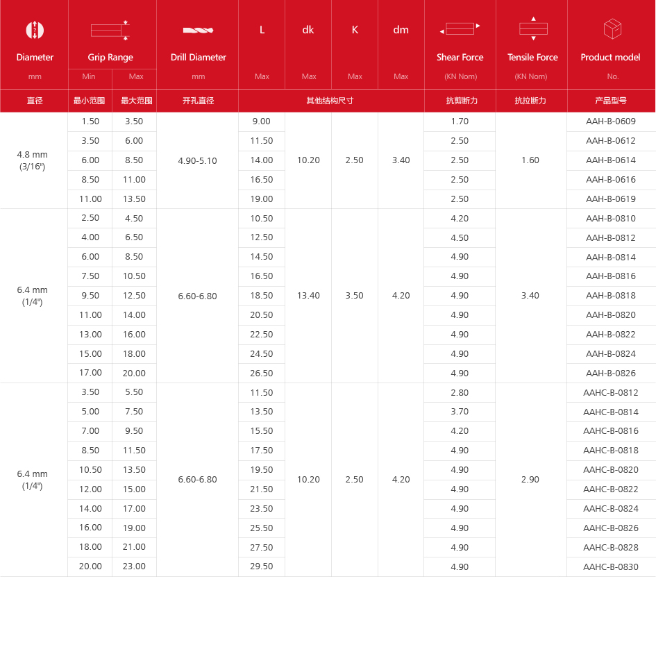 Φ4.8mm - Φ6.4mm |