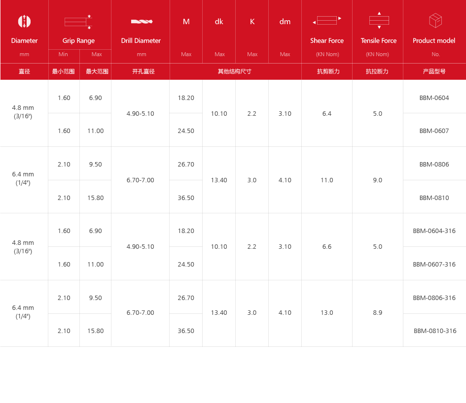 外鎖圓頭拉絲鉚釘(全不銹鋼)BBM