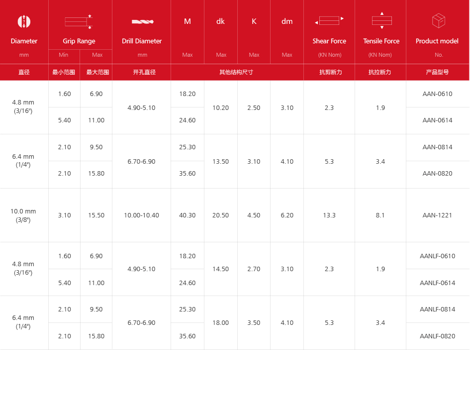 內鎖圓頭拉絲鉚釘(全鋁合金)AAN