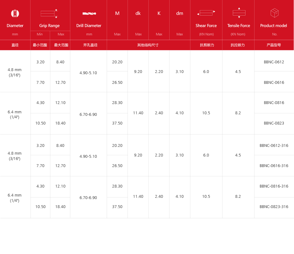 內(nèi)鎖沉頭拉絲鉚釘(全不銹鋼)BBNC
